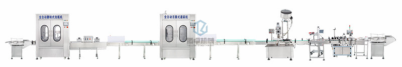 1.全自動生產(chǎn)線流程:人工把瓶放到送瓶轉(zhuǎn)盤上-自動洗瓶-自動高溫烘干殺菌-人工燈檢-自動灌裝-自動理蓋下蓋-自動鎖蓋-自動打碼-自動貼標-人工收瓶